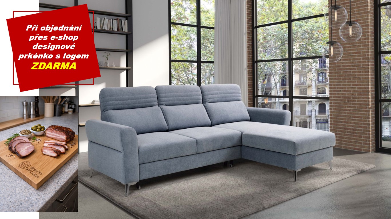 Calabria III Elegantní rohová sedací souprava Calabria II. Rozměrově nejmenší z naší nabídky řady Calabria. Moderní design doplňují polohovatelné záhlavníky a jemné prošívání. Souprava je na vyšších nohách vhodná i pro robotický vysavač. Pohodlné sezení zajistí vysoce elastická HR pěna umístěná na f... celý popis