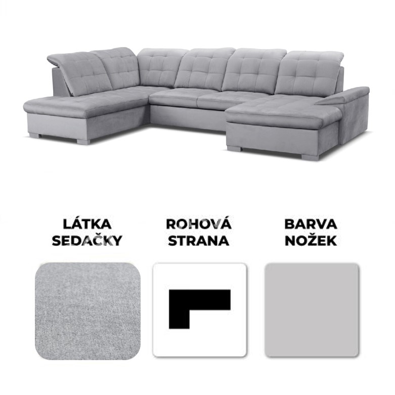 Sedací souprava Elena do U v moderním designu zajistí dostatečné pohodlí díky vysokým polohovacím opěrkám. Je možnost objednat v pravém nebo levém provedení. Jednoduchý vysouvací rozklad poskytne dostatečně velký prostor pro příležitostné přespání. Tato sedací souprava disponuje dvěma úložnými prostory.