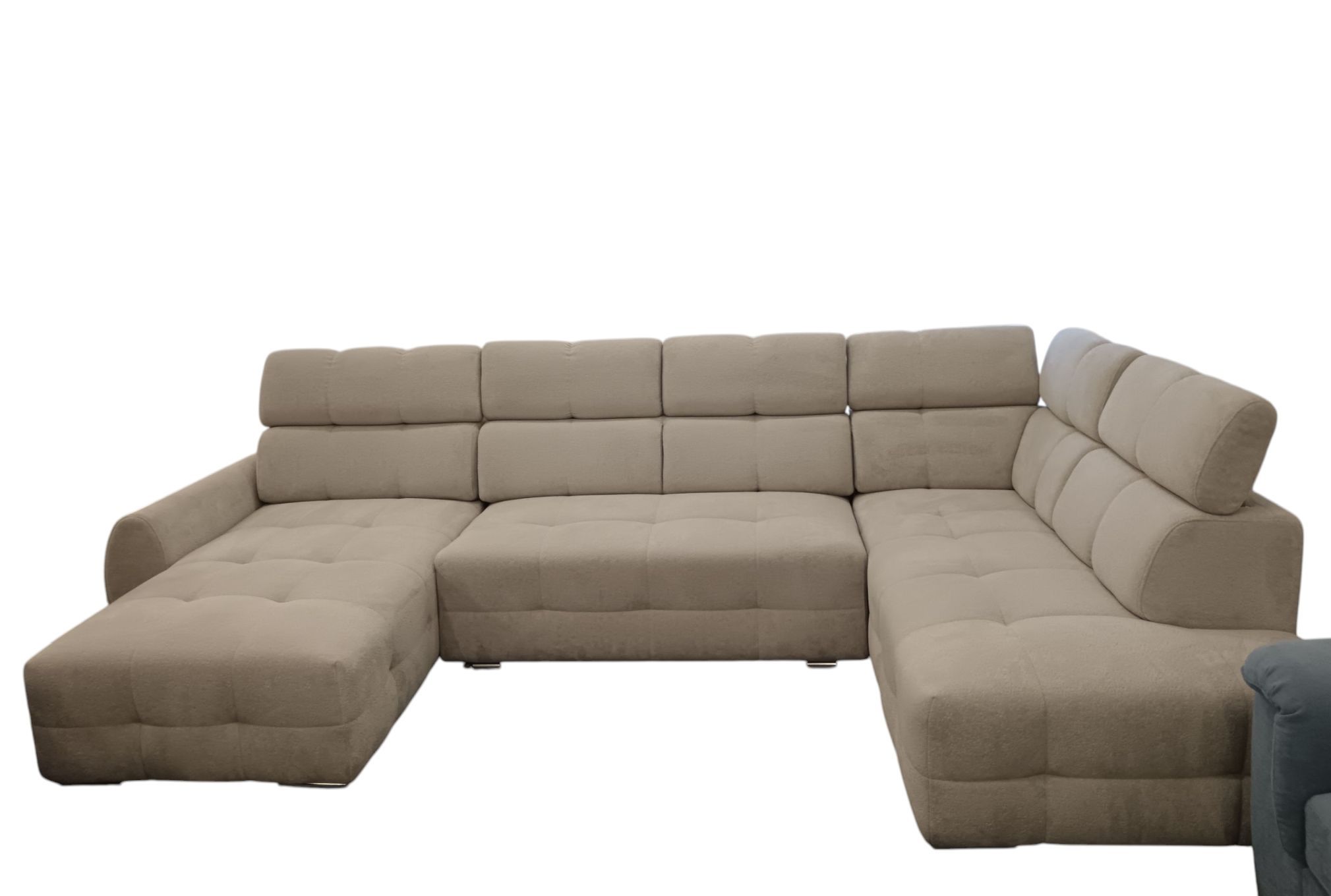 Moderní sedací souprava Garda I do U v elegantním designu. Souprava zaujme nápadným prošitím a polohovatelnými záhlavníky. Pohodlné sezení zajistí vysoce elastická HR pěna umístěná na faliste pružinách. Rozklad na spaní je řešen výsuvným systémem PUMA. Součástí soupravy jsou dva úložné prostory, které se snadno otevírají díky hydraulickým pístům.