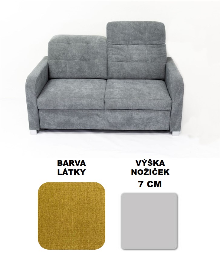 Potah je z kvalitní příjemné látky Alfa, v nabídce ve více barevných odstínech.