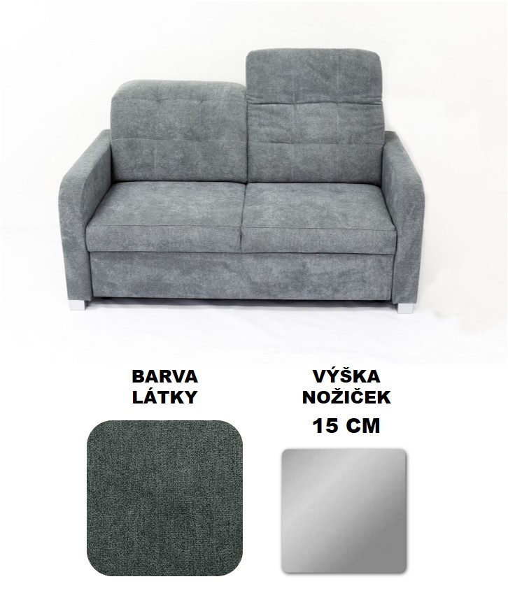 Potah je z kvalitní příjemné látky Alfa, v nabídce ve více barevných odstínech.