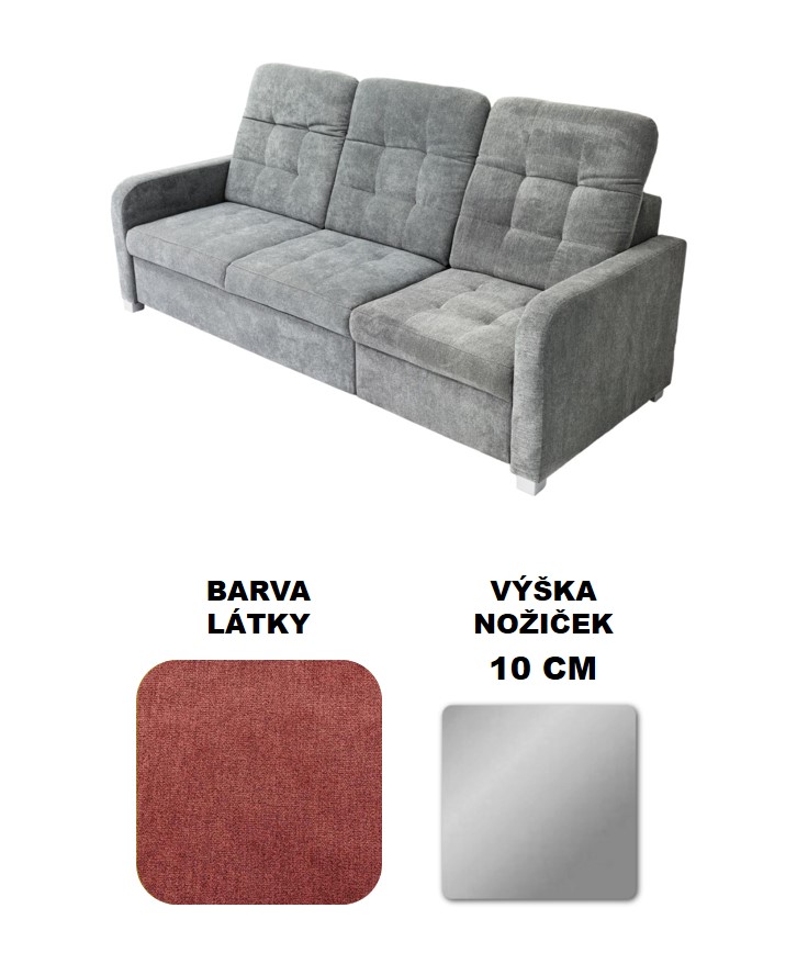Trojsedák: délka 225 cm, šířka 93 cm, výška sedu 44 cm, výška 86/106 cm, hloubka sedu 57 cm,