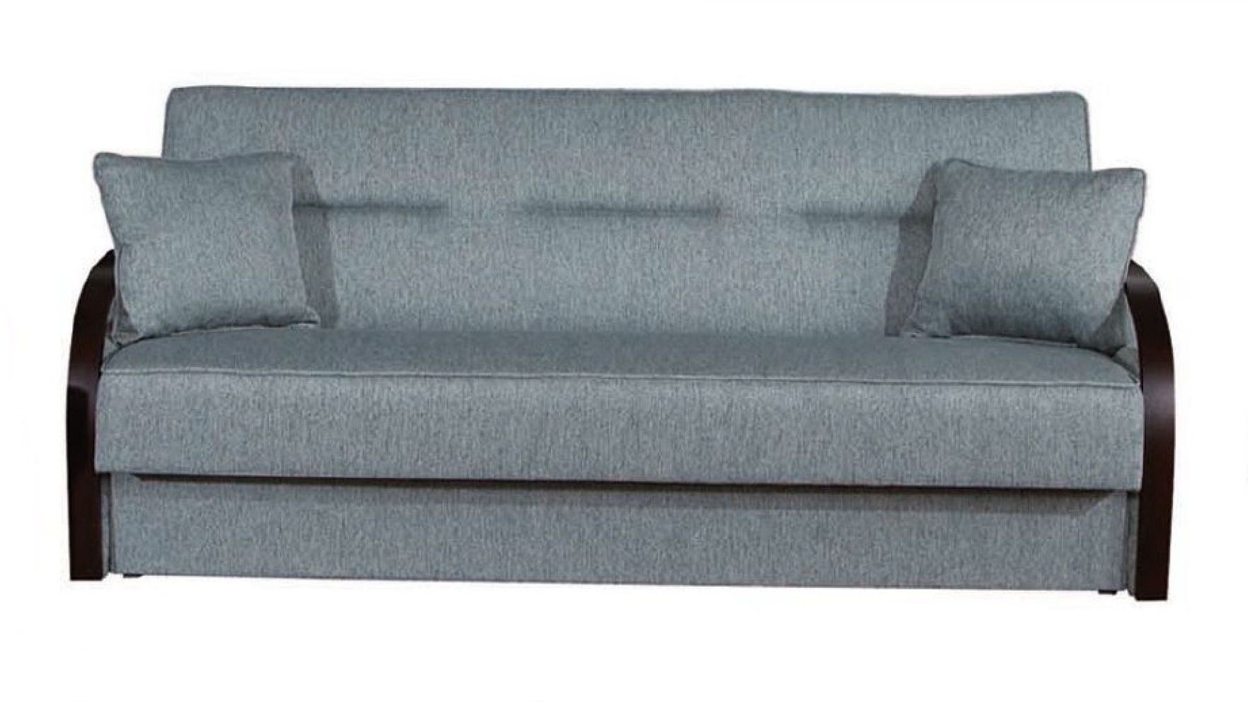 Klasická pohovka Lux s dřevěnými opěry. Pohodlná pohovka vhodná i do menších prostorů. Příjemný sed zajistí vlnovité pružiny s kvalitní pěnou. Disponuje úložným prostorem, který naleznete při rozkladu. Rozklad je řešen systémem tzv. klik-klak. Součástí pohovky jsou dva na volno řešené polštářky ve stejné látce.