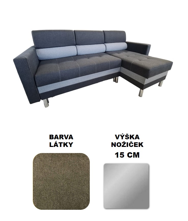 Sedací souprava je oboustranná, boční díl lze umístit na pravou i levou stranu.