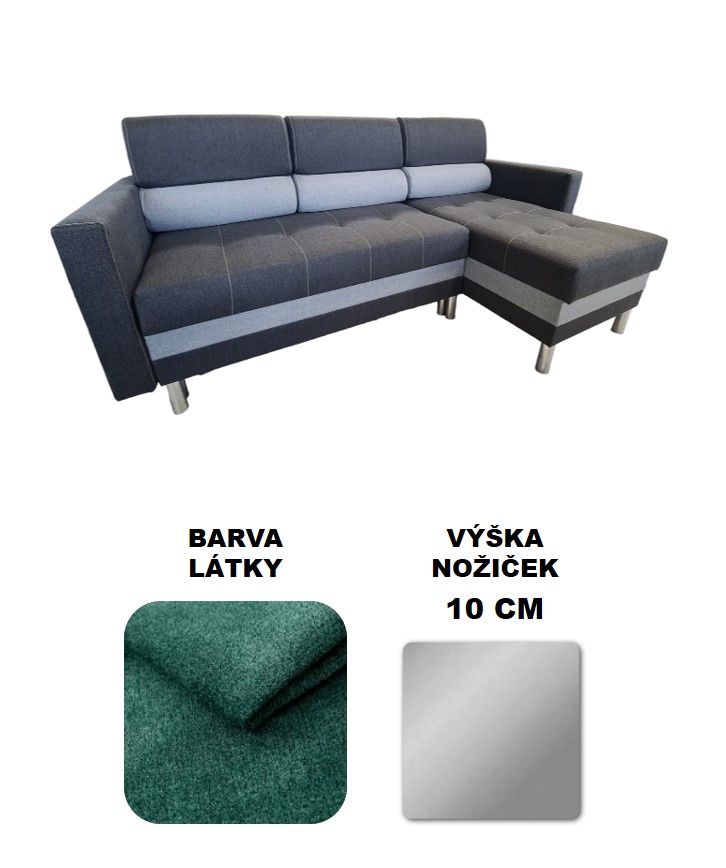 Sedací souprava je oboustranná, boční díl lze umístit na pravou i levou stranu.
